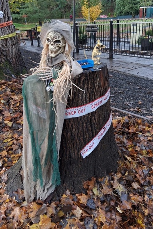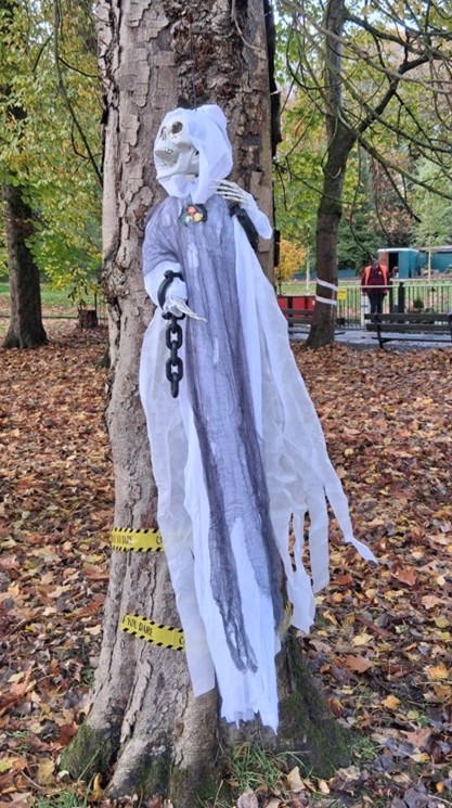 As previously mentioned on Sunday 26th October we had been asked to provide trains by the Friends of Thompson Park to help with a Halloween event they were planning, We were happy to oblige and a very successful day was enjoyed with scary stuff being supplied by us ( not in the form of our members, though there were moments when that could be disputed (you know who you are !) and also by the Friends. There was face painting for the children and it could be said that some of our drivers did not need that !!! and a great day was enjoyed by all, I think.