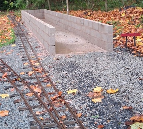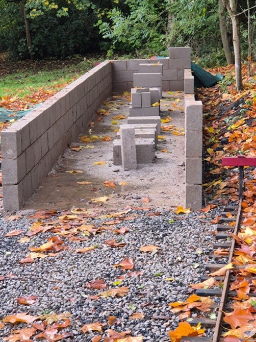 We have been working on building a new low level carriage shed to accommodate our growing stock, it is built from block and we will be integrating it into the landscape as much as possible, A member has supplied the rail and turnouts necessary but it is still in the early days of construction.